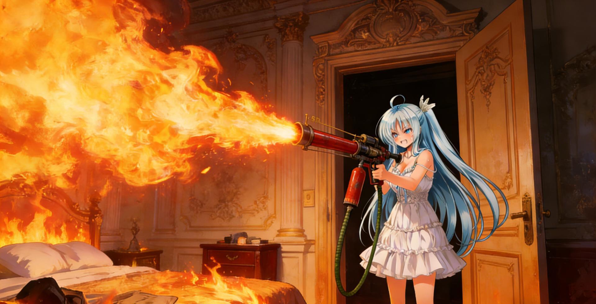 整個房間陷入了火海,一切都燒得啪喇作響,火舌四處燒開去。